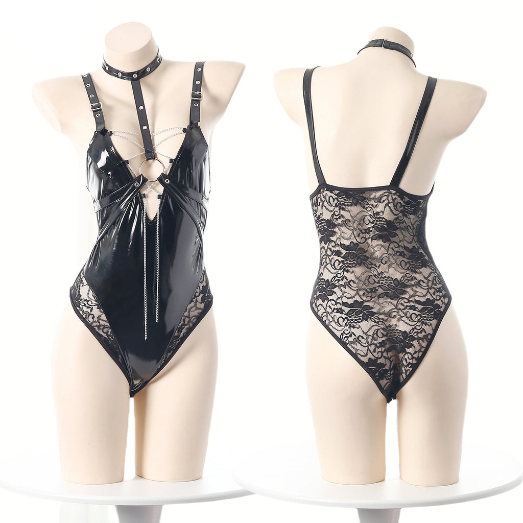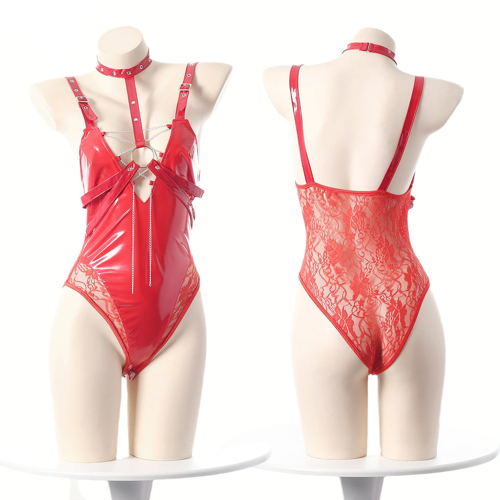 二次元蕾絲拼接連體衣 033 (黑色,紅色) M<55kg,L<65kg