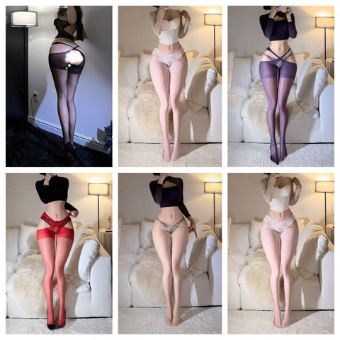 交叉一體長筒絲襪 J98 (紫色,黑色,白色,紅色,粉紅色,膚色)