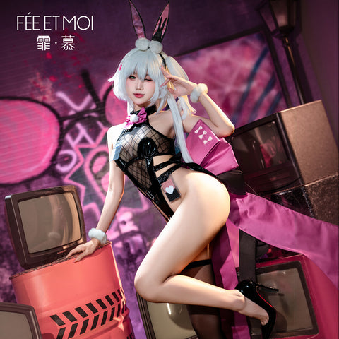 ◆納格陵◆黑+粉【髮箍+連身衣+手環*2+工牌*2+皮帶+大蝴蝶結+長筒絲】