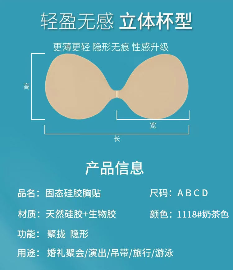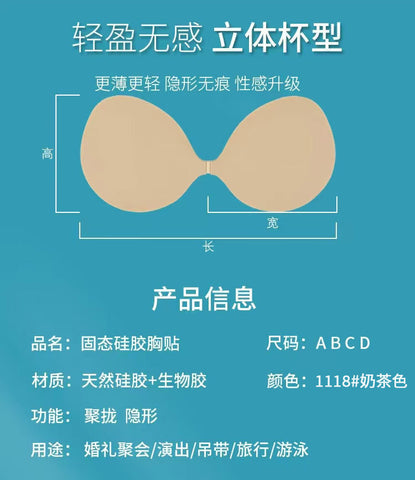 固態矽膠隱形聚攏暴汗不掉薄款胸貼 A,B,C,D 奶茶色