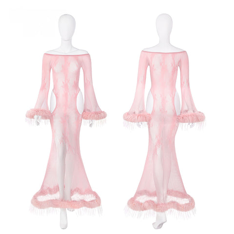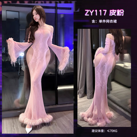 夜宴魅影網衣魚尾裙 ZY117 (黑,酒紅,粉) <70kg