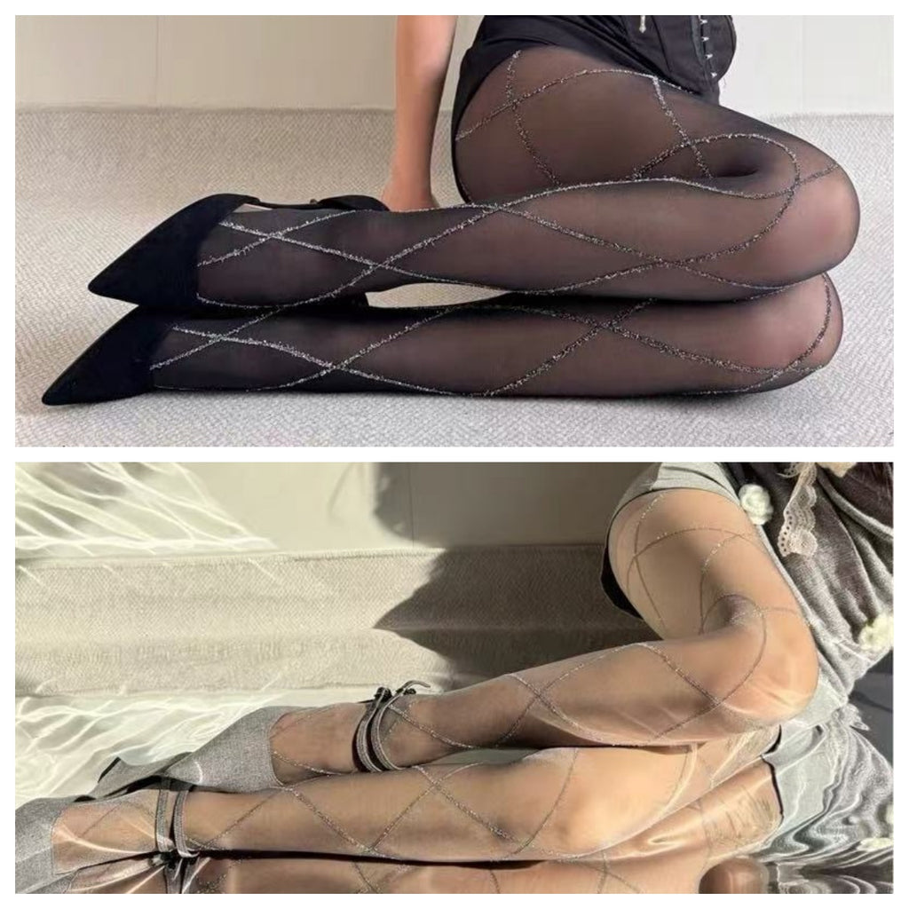 大菱形格條紋亮絲絲襪 LA26 (黑色,灰色)