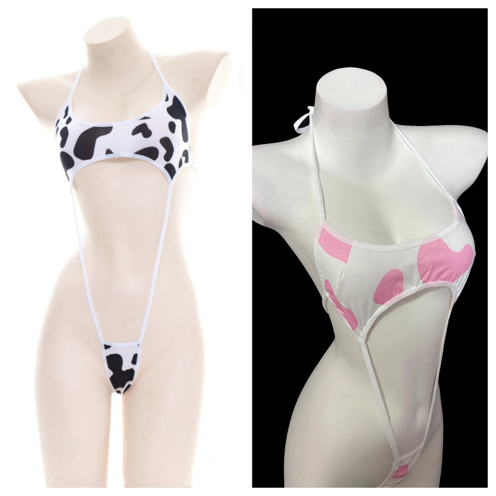 奶牛綁帶三點式 S0368 (黑,粉)