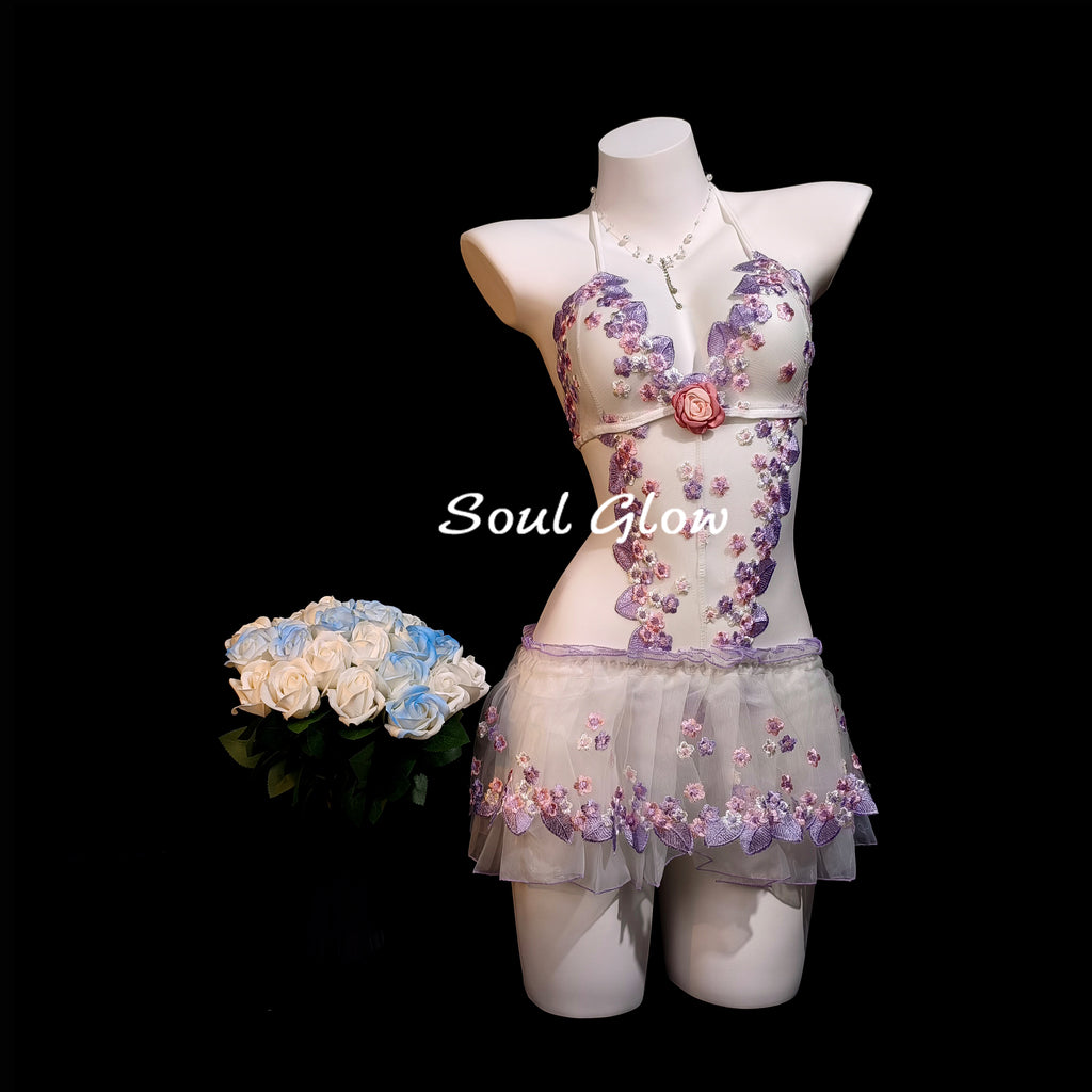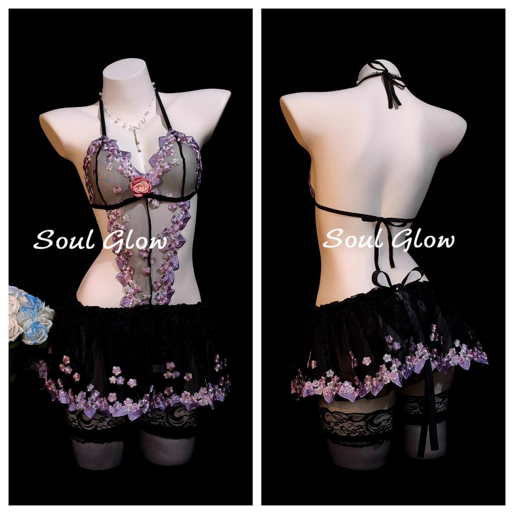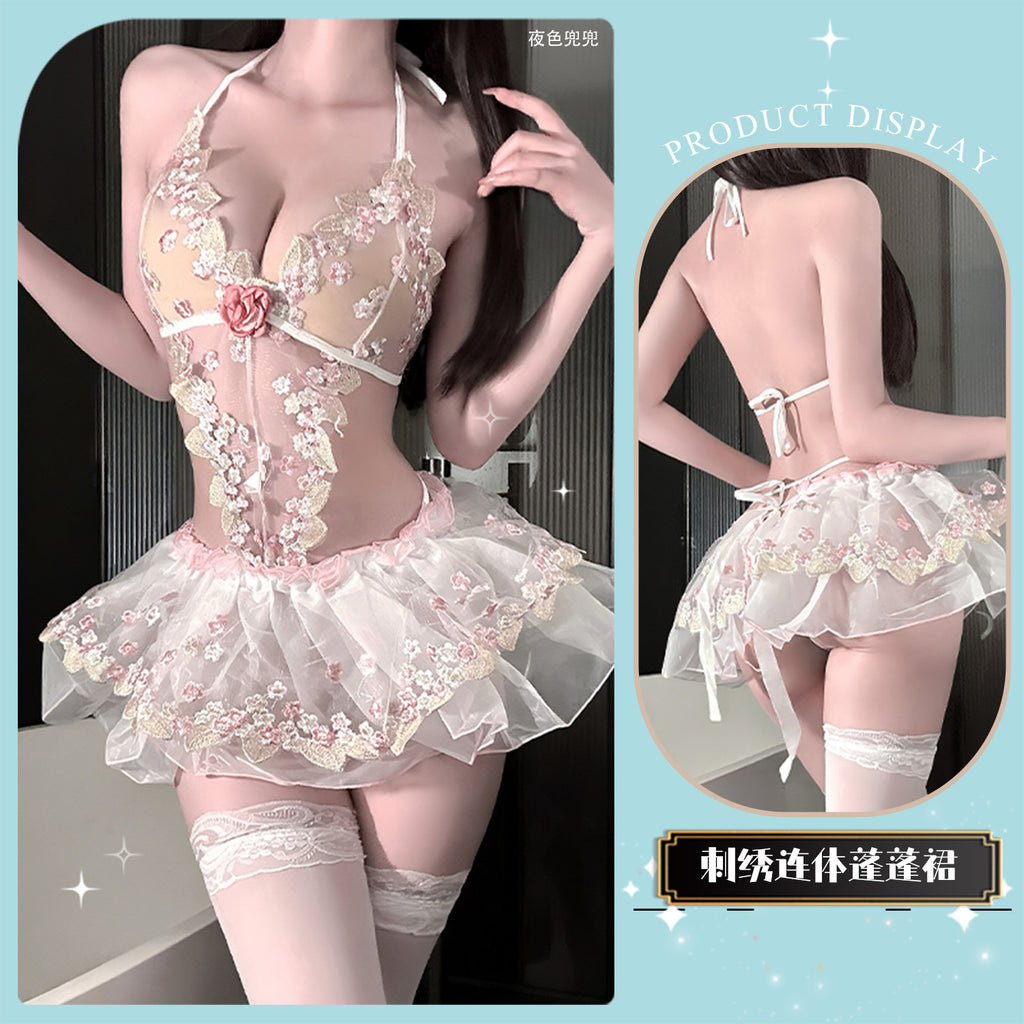 學院風刺繡繫帶蕾絲睡裙 1195 (紫色,粉紅色,黑紫色)