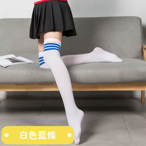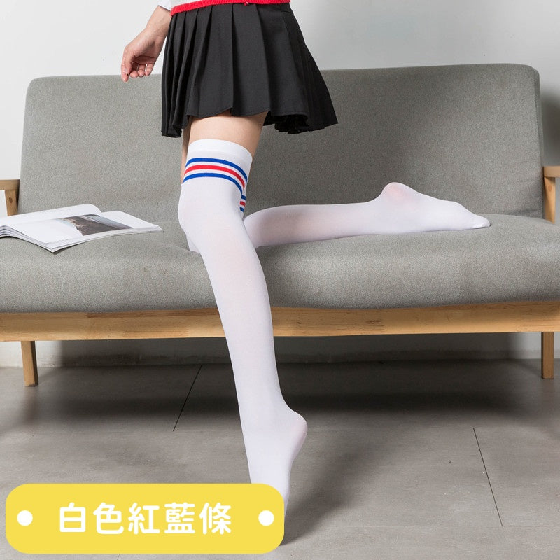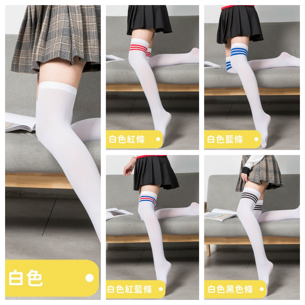 學院風天鵝絨過膝襪 (白色,白色黑條,白色紅藍條,白色紅條,白色藍條) 605