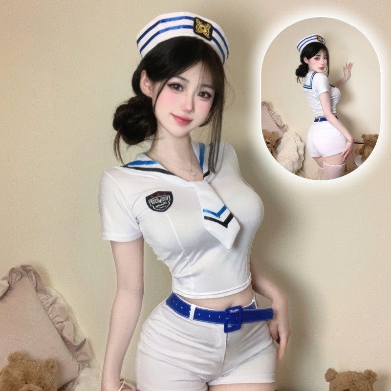 上衣+短褲+皮帶+海軍帽