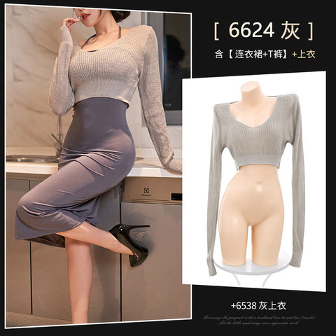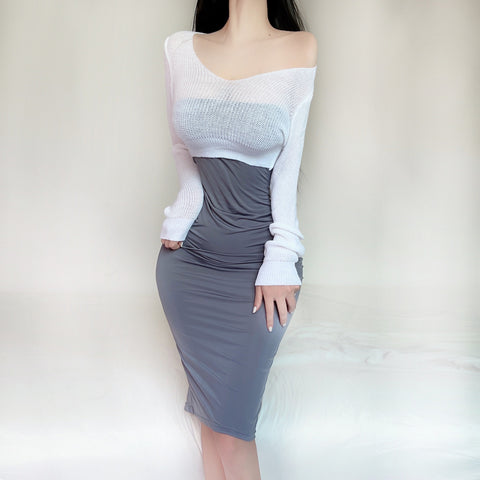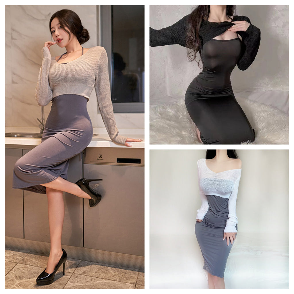 後背綁帶連衣裙 6624 (黑色,灰色,白色) + 毛衣(灰,黑,白)