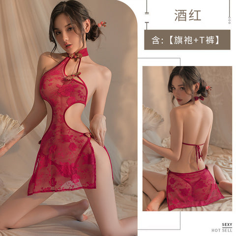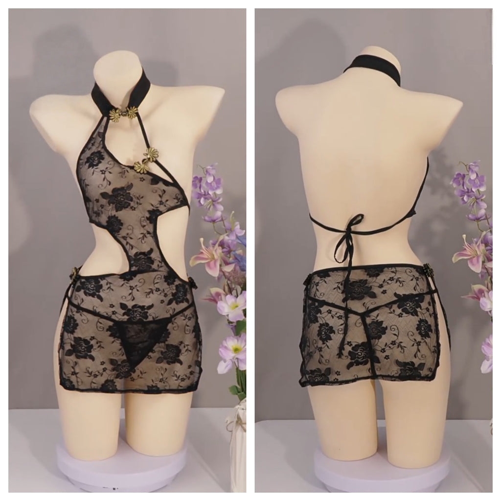 復古盤口睡衣旗袍 2034 (黑色,白色,酒紅)