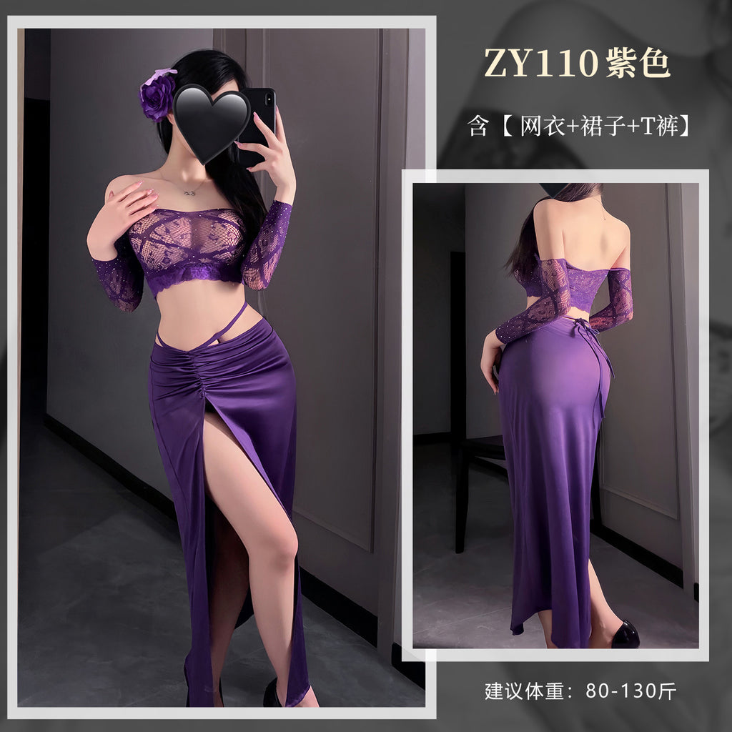 暗欲交織網衣透視睡衣 ZY110 (紫,黑,淺咖)