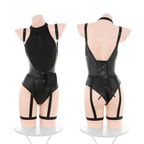 ◆蜜愛狙擊◆黑【上衣+開襠連身衣+連腿環吊襪帶】