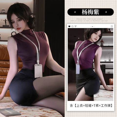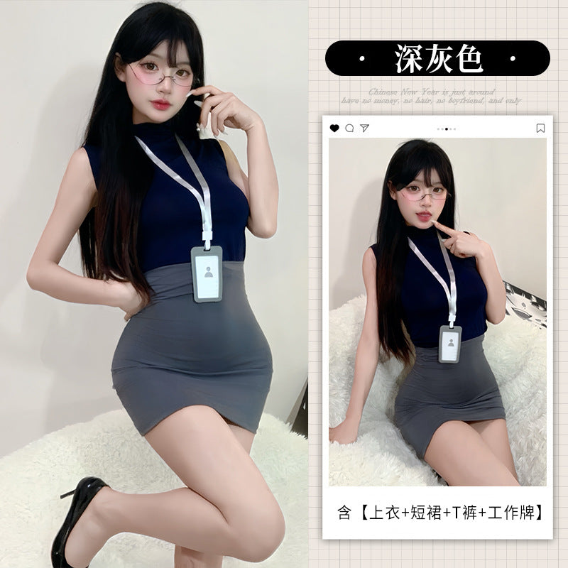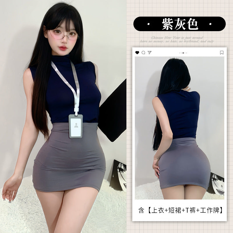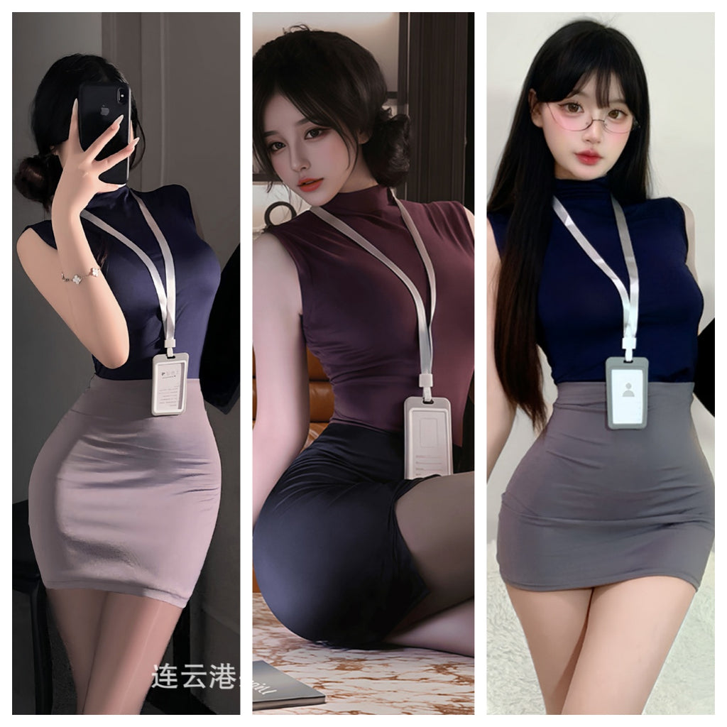 秘書OL無袖包臀裙 8369 (深灰,紫灰,楊梅紫)