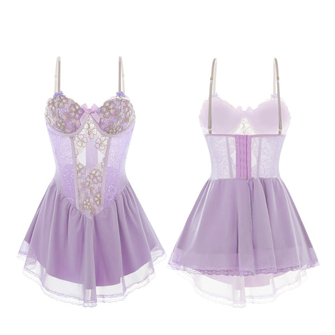 紫蘿法式蕾絲鋼圈馬甲吊帶睡衣 7713