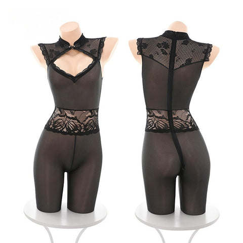 絲滑美體透膚開襠連身衣 ZY6522 (白,黑)