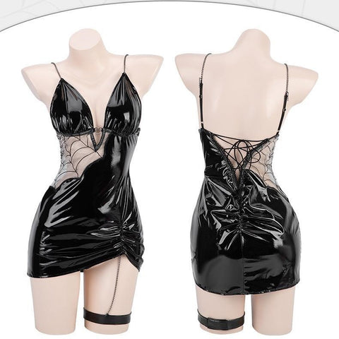 萬聖節 蛛網透視漆皮緊身包臀裙 8919