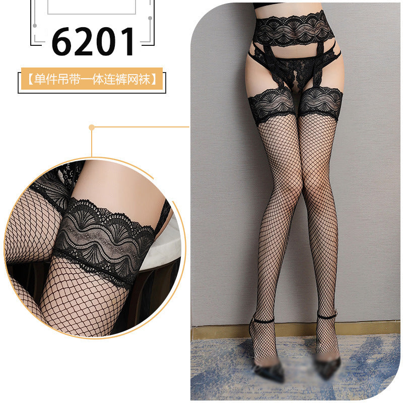 蕾絲吊帶漁網襪 6201