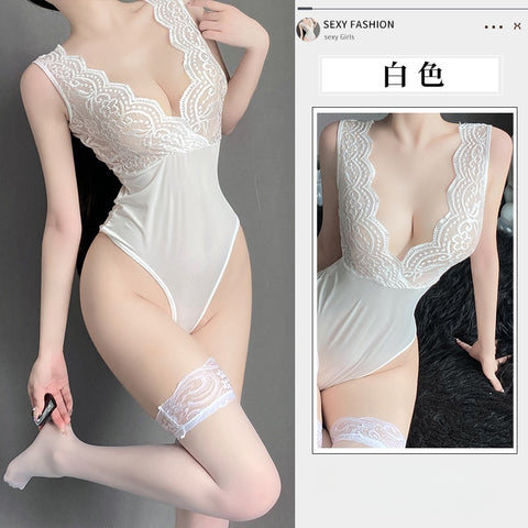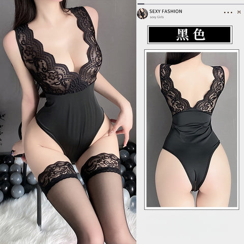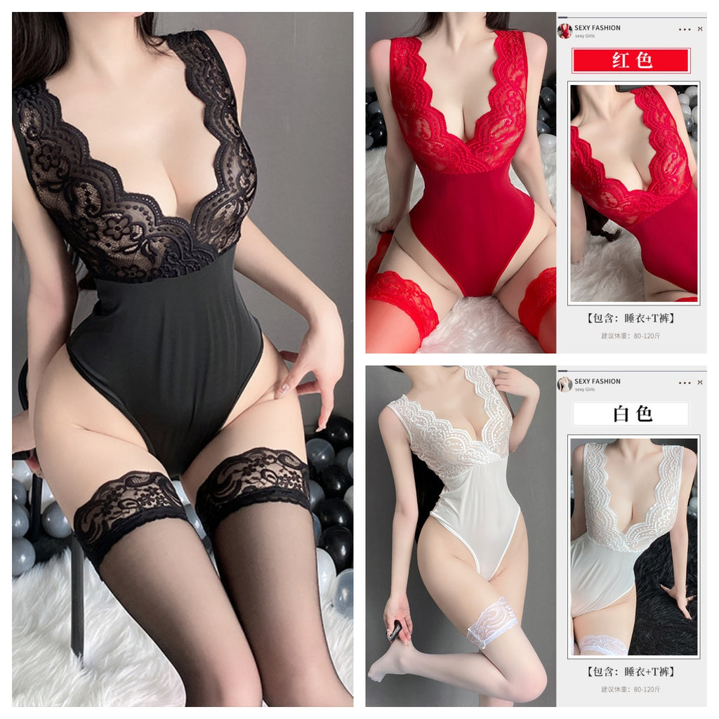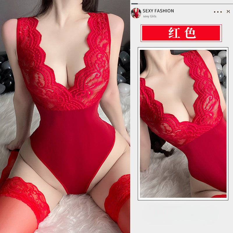 蕾絲拼接緊身連身衣 2051 (黑色,白色,紅色)