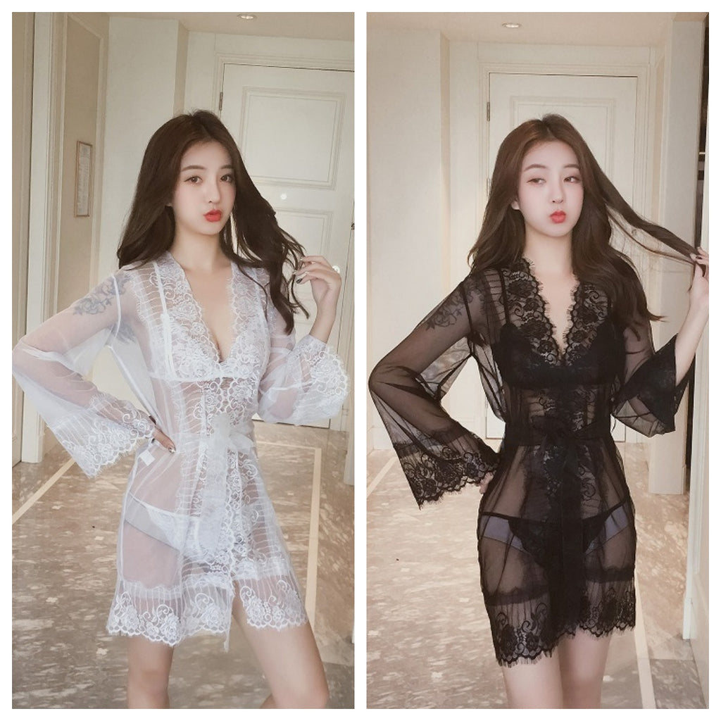 蕾絲睡裙睡袍 1057 (黑色,白色) F<65kg,XL<75kg