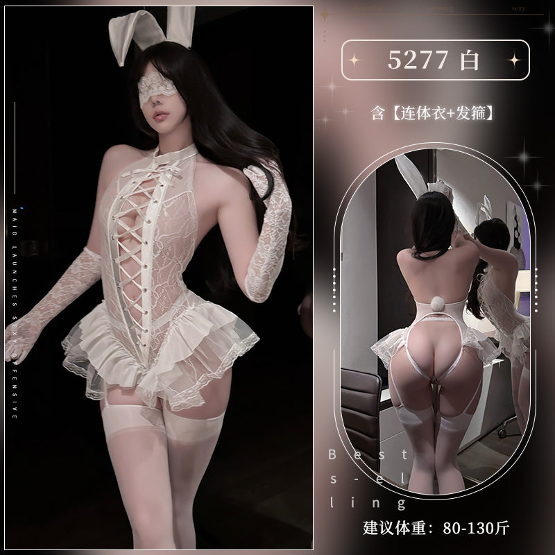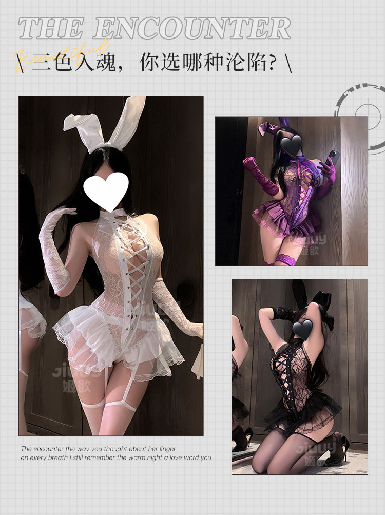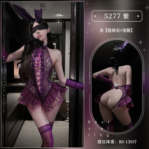 蕾絲綁帶兔女郎 5277 (黑色,紫色)