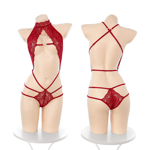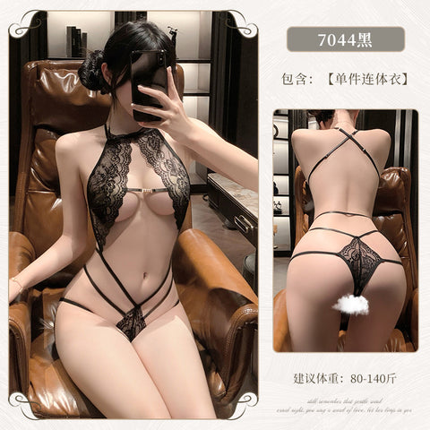魅惑蕾絲鏤空三點式連身衣 7044 (黑,紅,藍,白)