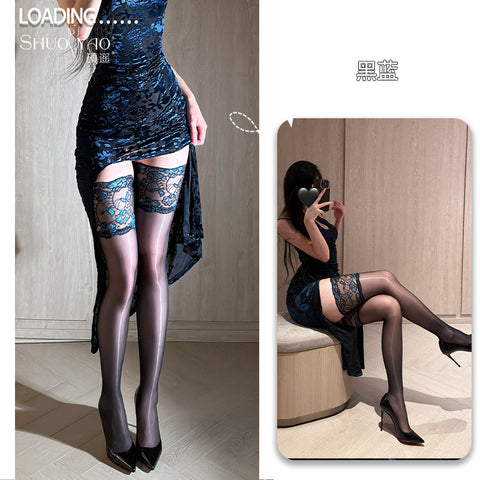 【薔薇】復古蕾絲花邊長筒絲襪 A240 (紅色,藍色) 啞光【超薄美膚】