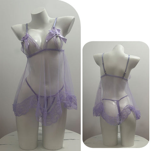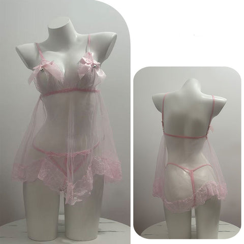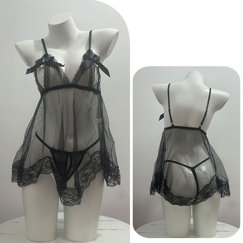 蝴蝶結網紗吊帶睡衣 2144 (黑色,粉色,紫色)