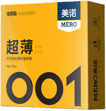 【超薄】美諾001玻尿酸黃盒(3只裝)安全套 52mm M04