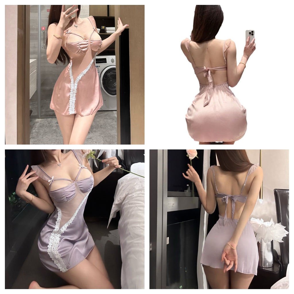 透視網紗吊帶裙 4340 (粉色,淺紫色)