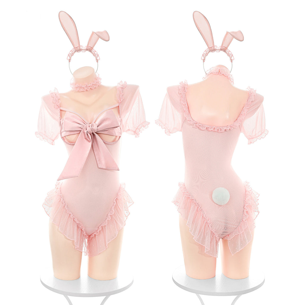 ◆蜜桃陷阱◆粉【髮箍+頸環+含鋼圈開襠連身衣】