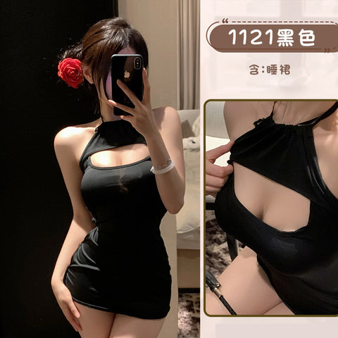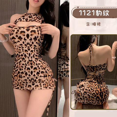 鏤空火辣睡衣 1121 (灰色/豹紋/黑色)