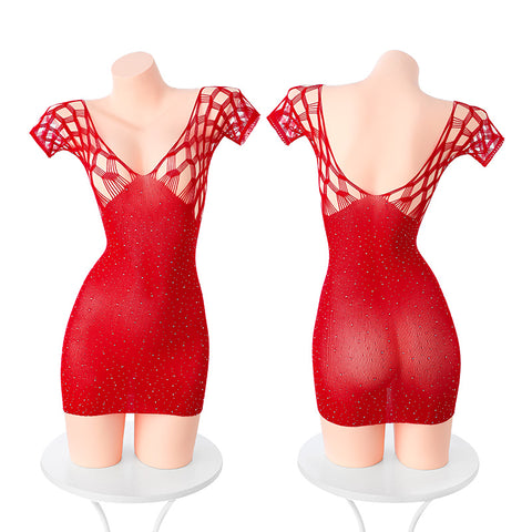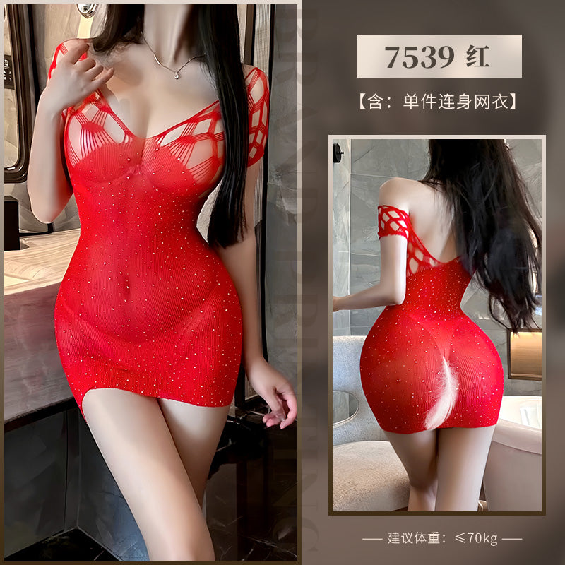 鏤空燙鑽包臀網衣 7539