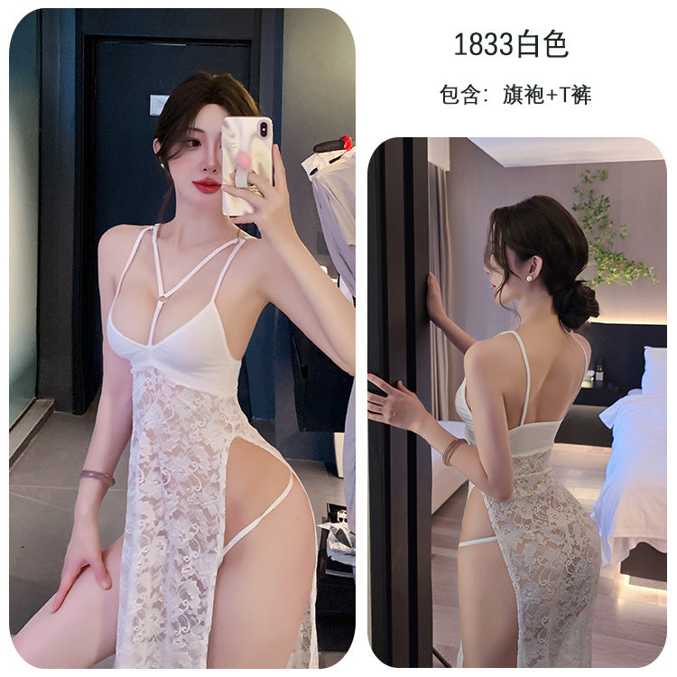 開叉連身長裙 1833 (黑色,紅色,白色)