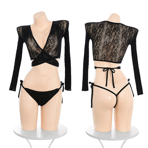 魅惑綁帶多穿法分離式連身網衣 7542 (黑,紫)
